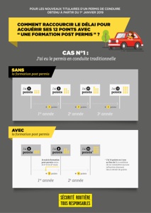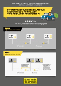 Les usagers qui auront fait le choix de suivre cette formation facultative, verront la durée de leur période probatoire réduite d'un an dans le cadre d'un apprentissage traditionnel et de 6 mois suite à une formation dans le cadre de la conduite accompagnée (voir documents en vignettes).